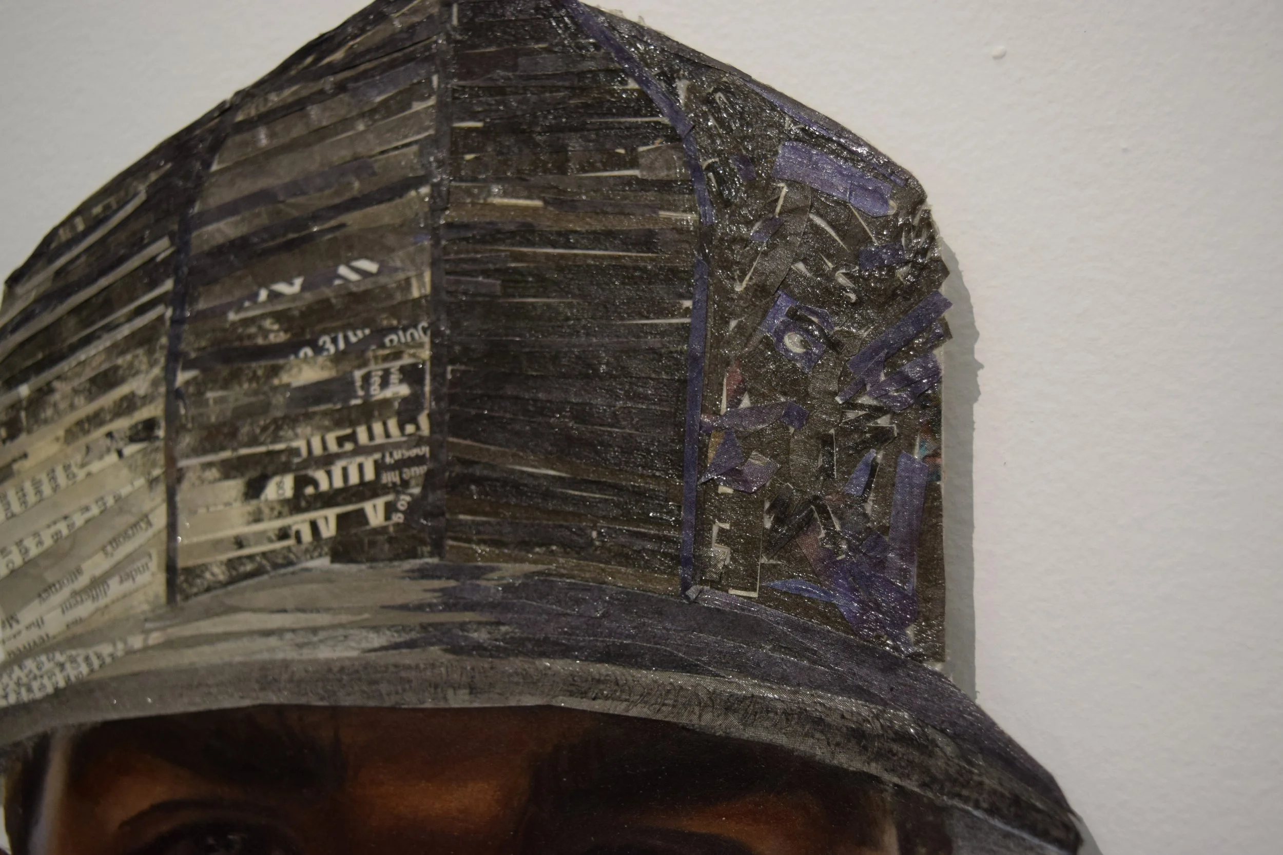 Made with oil paint, acrylic paint, newspaper, and gel gloss on watercolor paper mounted to chipboard. 13.5x10". 2023.